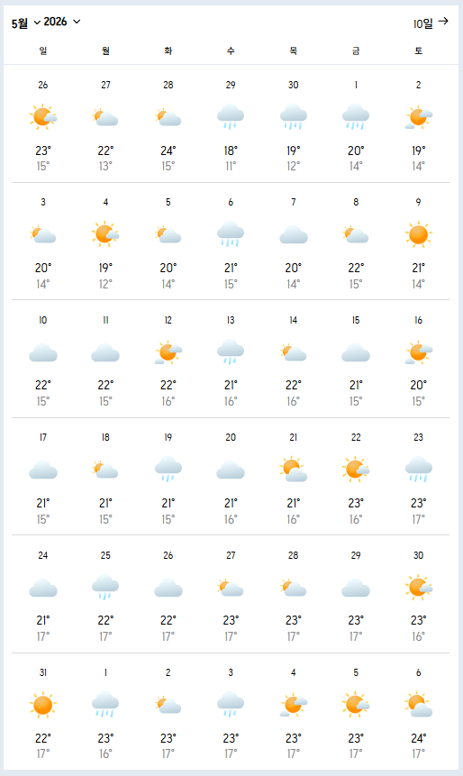 This is the section I really need you to pay attention to, because it's where most people get Jeju wrong. The temperatures look mild — highs in the low-to-mid 20s Celsius — and it's easy to assume that light summer clothes will be fine. They won't be. Not in Jeju in May.