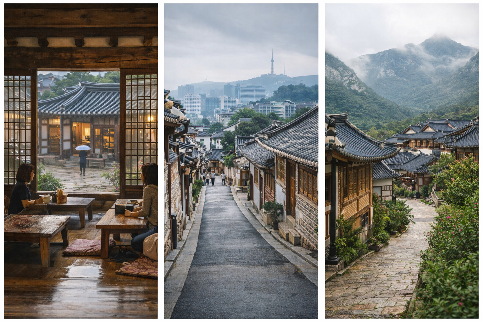 Eunpyeong Hanok Village is one of those places most tourists don’t know about, which makes it one of the best hidden gems in Seoul for a rainy day. With far fewer visitors than Bukchon, you’ll often have whole sections of the village practically to yourself. The backdrop of Bukhansan mountain — usually shrouded in mist when it rains — behind the hanok rooftops looks like a traditional ink painting. It’s surreal in the best possible way.