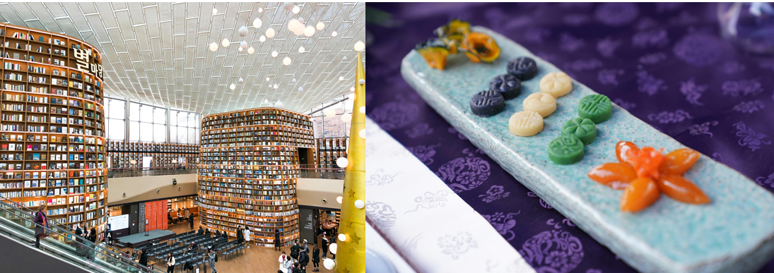 🏢 COEX Mall + Starfield Library — Morning. The Starfield Library inside COEX is one of Seoul's most photographed spots — a towering indoor library open to the public, free to enter, and genuinely stunning. The mall itself is one of Asia's largest underground shopping complexes.