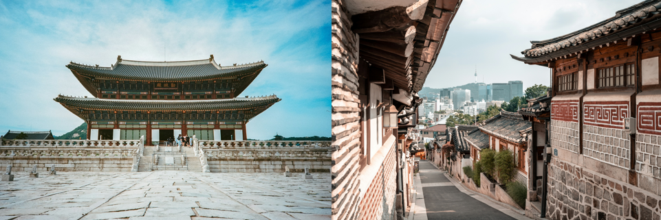 | North | History · Tradition · Retro | Gyeongbokgung, Bukchon, Gwangjang Market, Euljiro | First-timers wanting deep Korean culture |